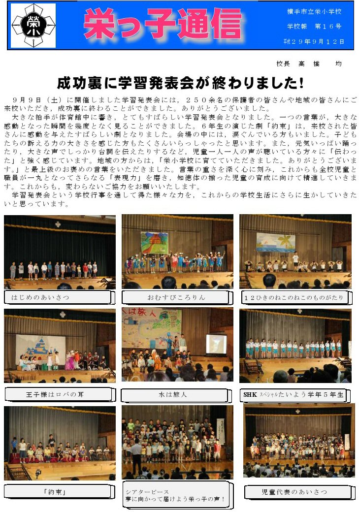 ⇒栄っ子通信を PDF判で表示 ⇒栄小学校の公式ブログ http://blog.goo.ne.jp/yokote_sakaesho