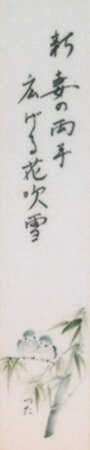 俳句と日本画の取合せの妙を楽しんでいます。 よく訊かれます、画題と俳題は一致しないのですか、と。観念的なつながりはあっても、同じにしない、ダブらせないところに味わいが生まれるとされます。 絵は筆勢を重んじます。重ねてなぞってはいけないとされています。